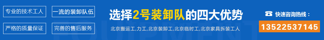 北京2號裝卸隊電話13522537145,現有60多名臨時工,可為您提供力工,臨時搬運工、臨時裝卸工,搬家工人,家具拆裝工人。我們在北京長期從事貨物裝卸車、搬運東西上下樓、整理庫房、大型設備移位、跟車送貨、文件整理、會展安裝、熟練拆裝家具、建筑裝修等力氣活。